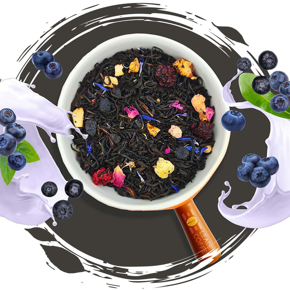 Wyjątkowa kompozycja czarnej herbaty cejlońskiej z borówką czarną, owocami leśnymi, jabłkiem, jeżyną i ananasem. Całość uzupełniają płatki róży, krokosza i bławatka, nadając naparowi owocowej głębi i subtelnych kwiatowych nut.