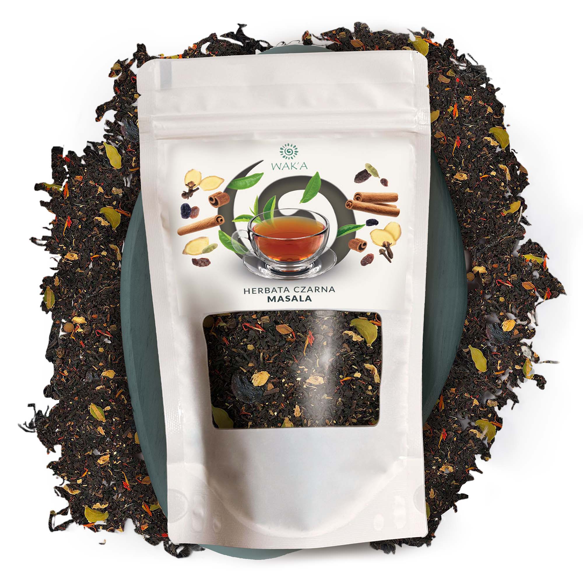 Herbata czarna Masala – eleganckie opakowanie 100g w szczelnym doypacku z okienkiem i zamkiem zip-lock, które chroni świeżość i aromat mieszanki.