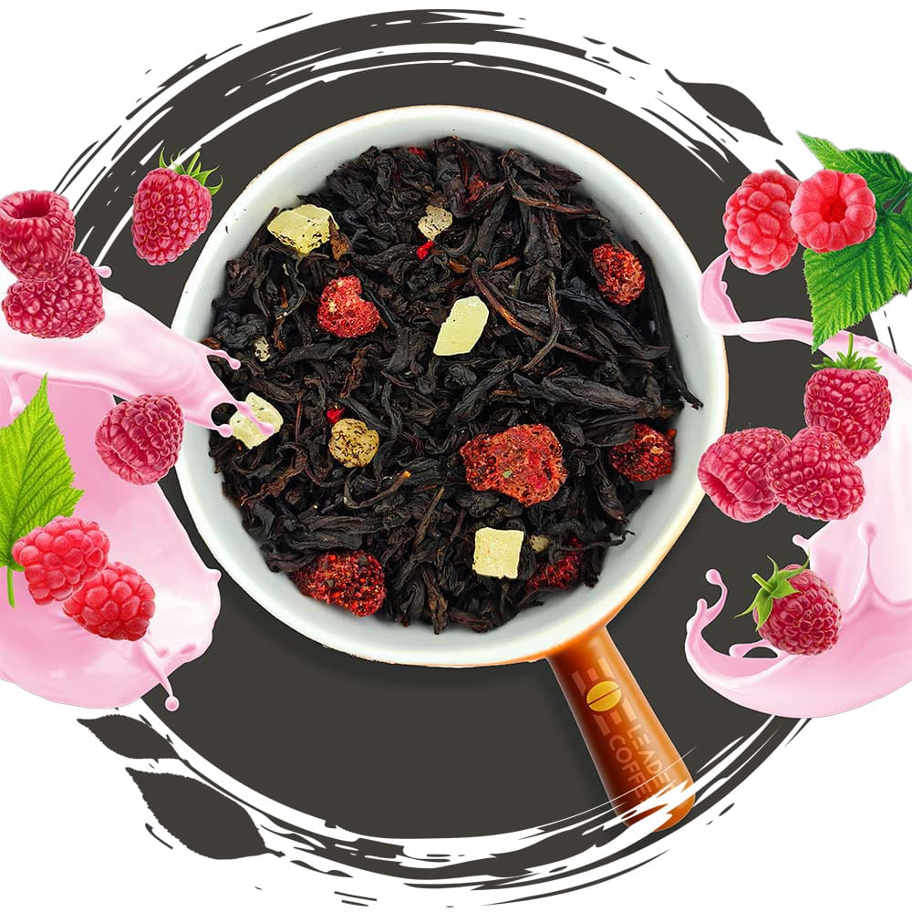Unikalna kompozycja czarnej herbaty cejlońskiej z liofilizowanymi malinami, kandyzowanym ananasem i truskawką, uzupełniona płatkami hibiskusa i naturalnym aromatem. Wyjątkowy smak deserowy inspirowany malinowym jogurtem.