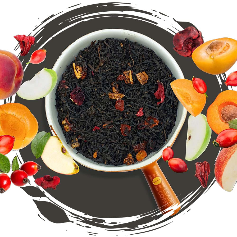 Wyjątkowe połączenie czarnej herbaty z morelą, jabłkiem i mango, wzbogacone kwiatami hibiskusa, dzikiej róży i krokosza. Owocowo-kwiatowy bukiet, który zachwyca aromatem i barwą naparu.