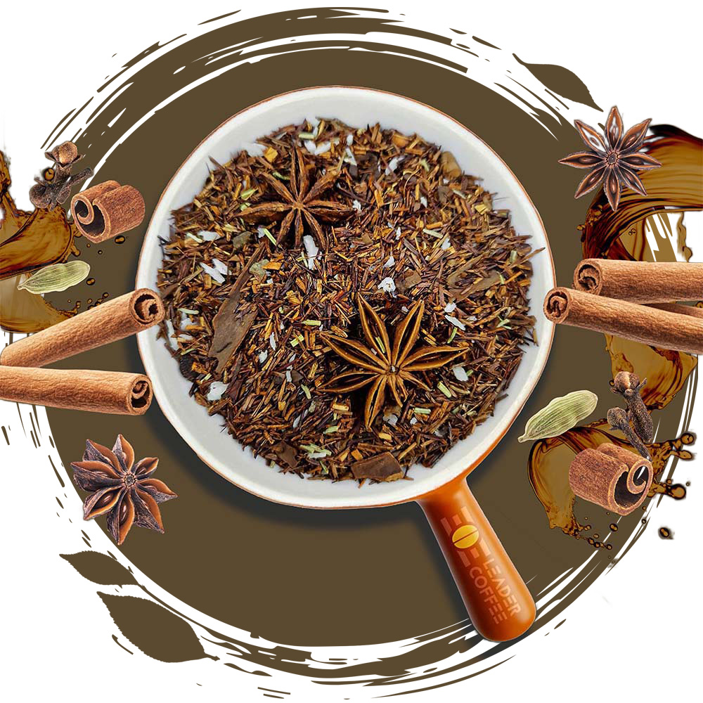 Rooibos nie zawiera kofeiny, dlatego można go parzyć długo – smak pozostaje łagodny i przyjemny.