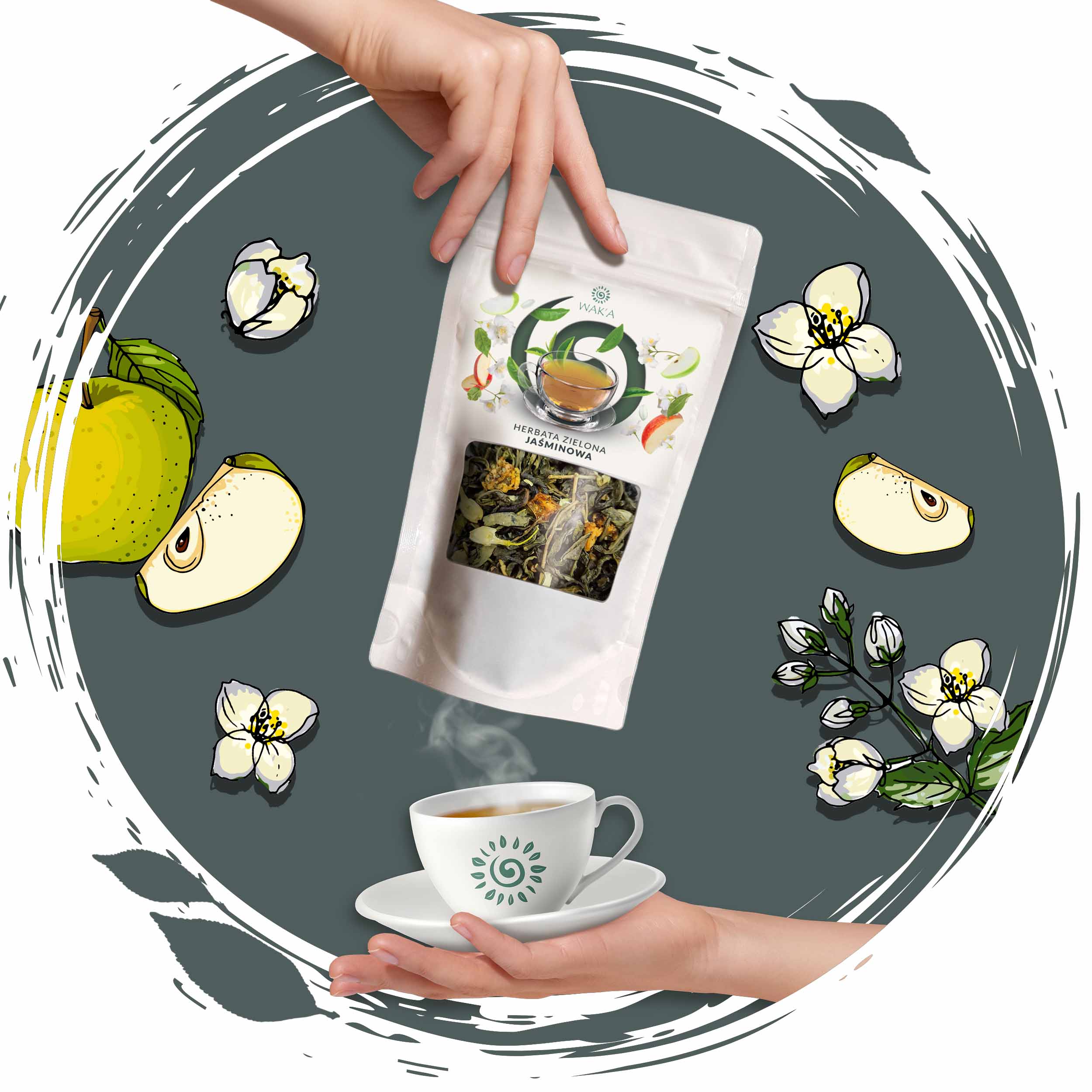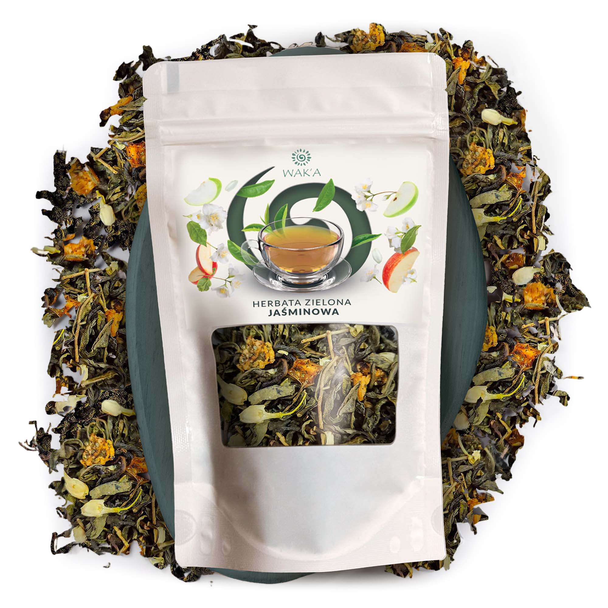 Naturalna harmonia – suszone jabłko i kwiaty jaśminu nadają naparowi wyjątkowy, świeży charakter z nutą kwiatowej słodyczy.