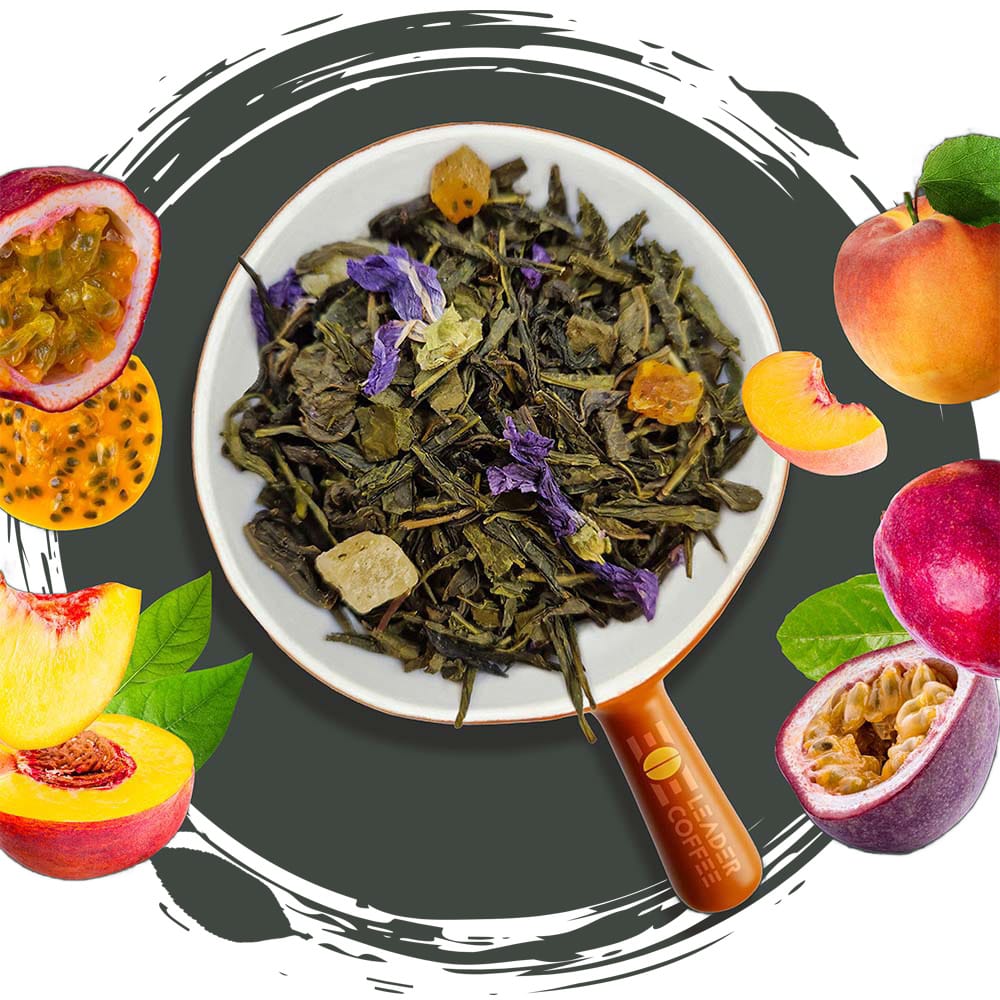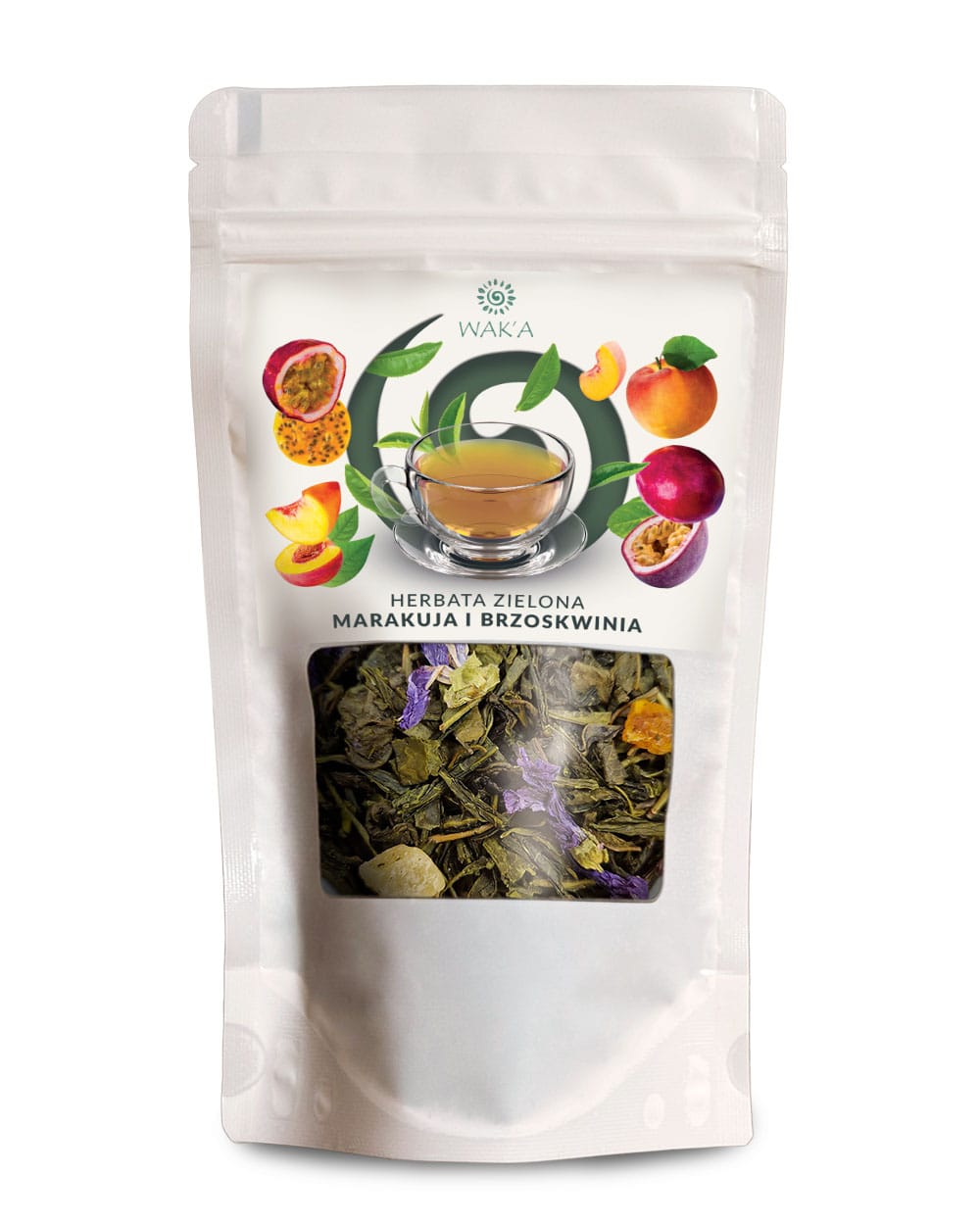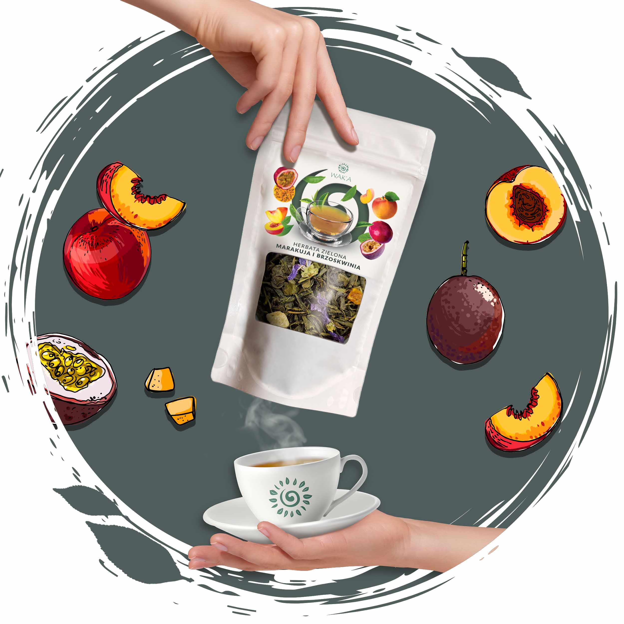Egzotyczna harmonia smaku – soczysta marakuja i słodka brzoskwinia nadają herbacie tropikalny charakter, idealnie łącząc się z delikatną bazą zielonej herbaty.