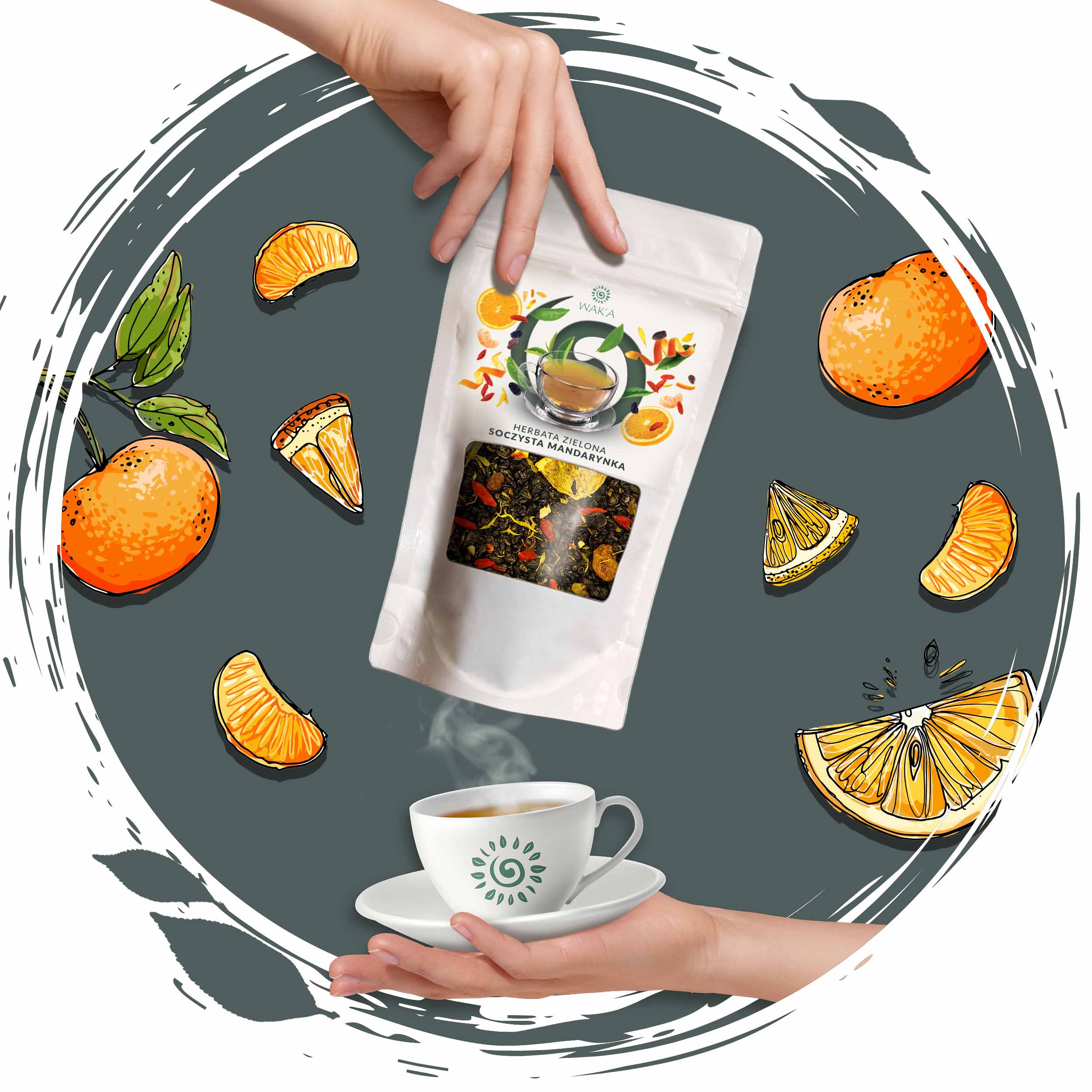 Herbata zielona liściasta Soczysta mandarynka, 100g