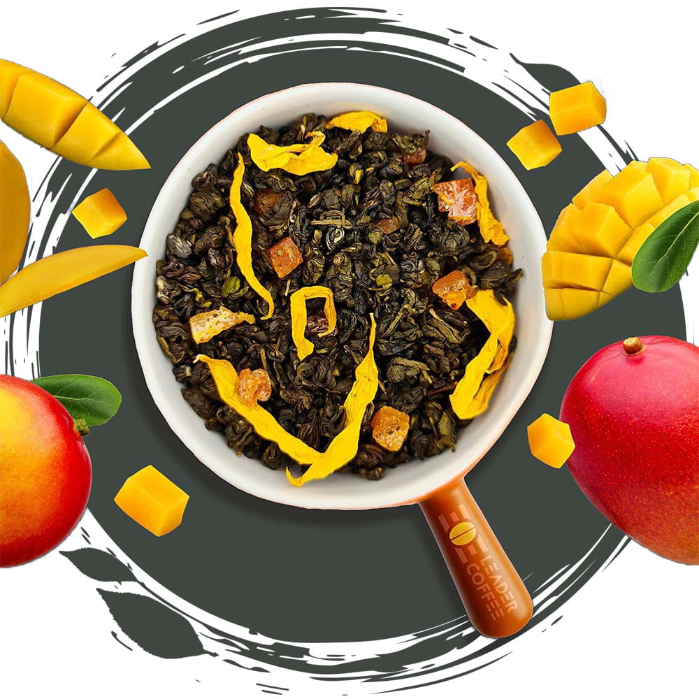 Herbata liściasta klasy Premium – starannie selekcjonowane liście, które stanowią naturalną bazę dla owocowej kompozycji z nutą mango.