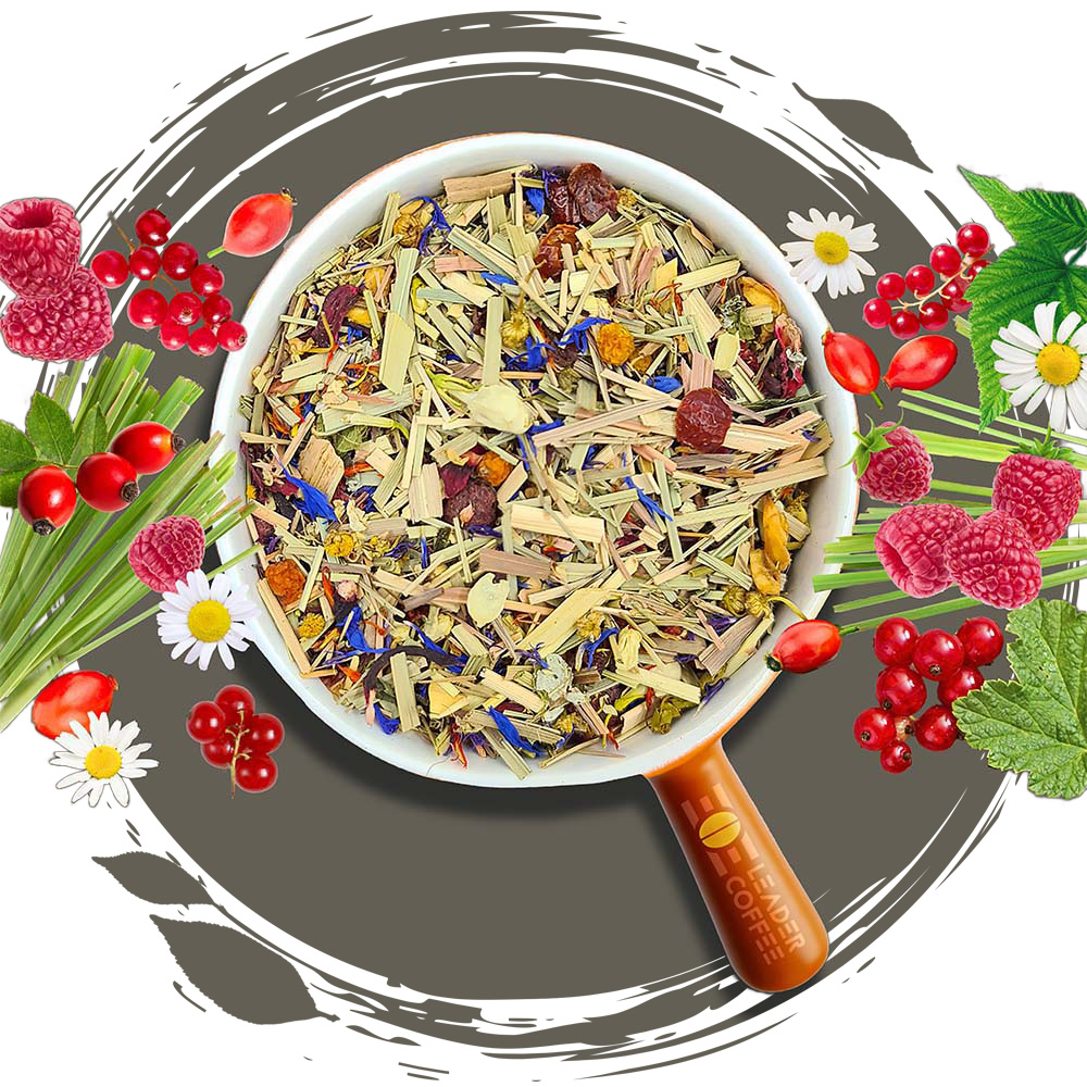 Kwiaty rumianku i płatki hibiskusa tworzą bazę tej barwnej mieszanki, wzbogaconej liofilizowanymi malinami i truskawkami. Owoce kaliny, czerwona porzeczka oraz dzika róża nadają jej wyrazisty, jagodowo-owocowy charakter. Płatki krokosza, chabru, kwiaty jaśminu, tymianek i naturalny aromat dopełniają kompozycję subtelnym, kwiatowym akcentem. Idealna для miłośników bogatych, wielowarstwowych smaków.
