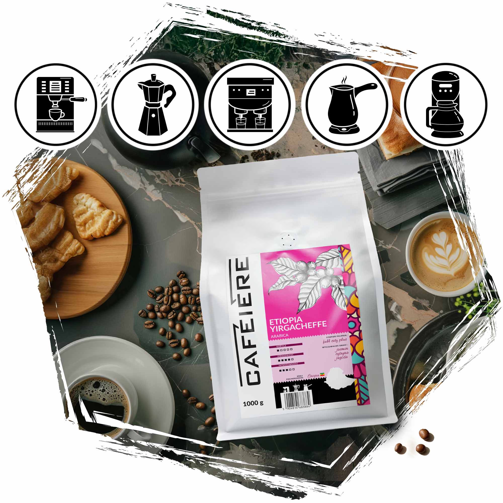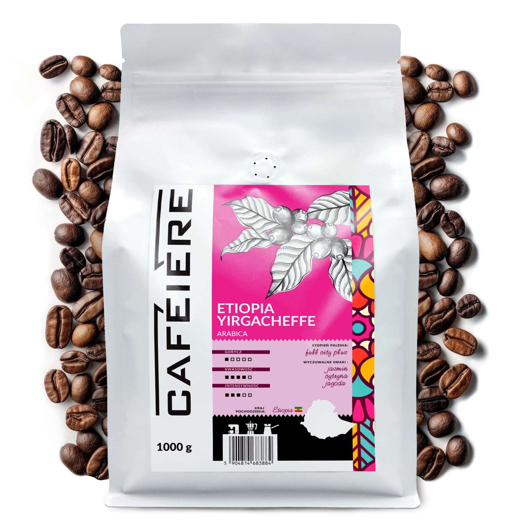 Kawa ziarnista CAFEIERE Arabica Etiopia Yirgacheffe, 1kg