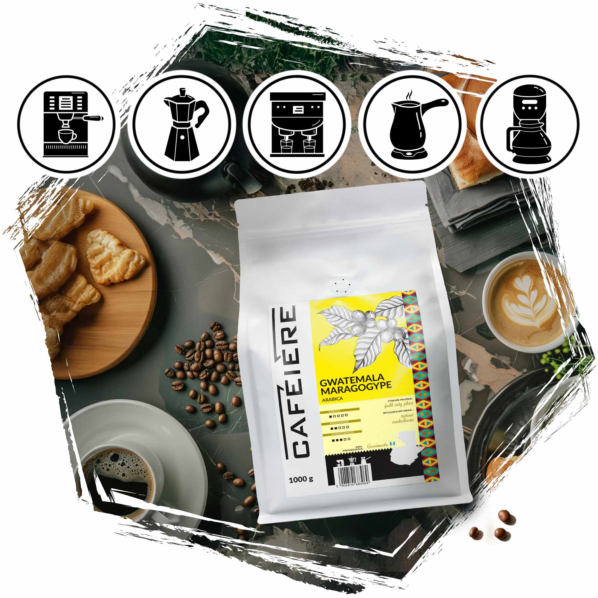 Kawa ziarnista CAFEIERE Arabica Gwatemala Maragogype, 1kg